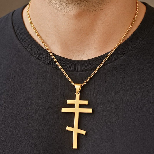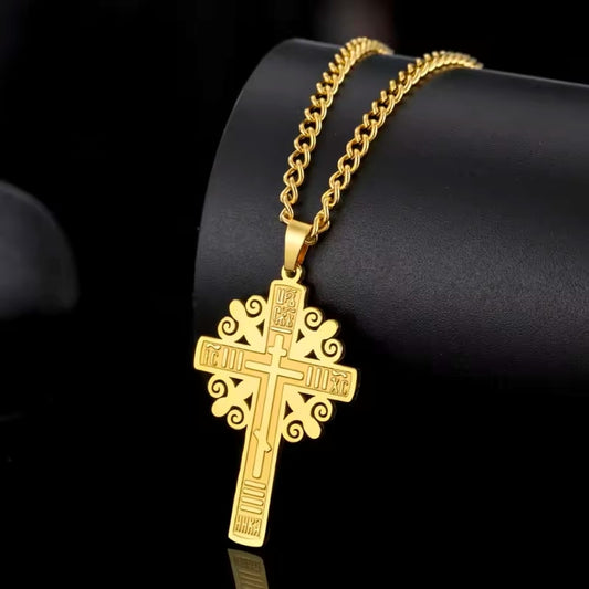 Nos croix orthodoxes sont conçues en acier inoxydable avec une finition plaqué or. L’acier inoxydable assure une résistance optimale face à l’usure et à l’oxydation, garantissant ainsi la solidité et la longévité de chaque modèle. Le plaqué or, quant à lui, apporte l’éclat et la noblesse de l’or tout en restant accessible. Cette combinaison permet d’offrir des croix élégantes et durables, adaptées aussi bien au quotidien qu’aux grandes occasions.